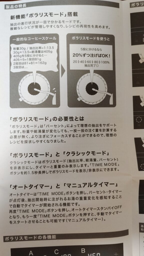ポラリスモード搭載で粉とお湯の比率を測れます。が、フレンチプレスには必要のない機能だったり(汗) そのうち使うだろうと言うことで。